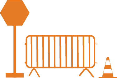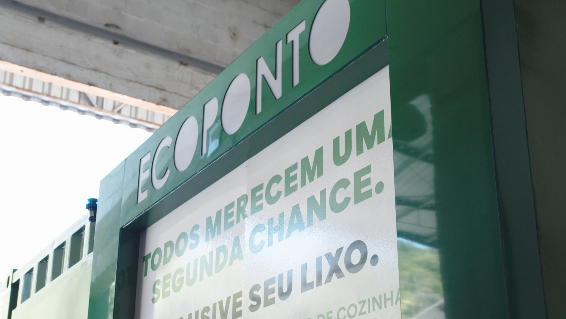 Placas de sinalização viária, pontos de ônibus, ecopontos e barreiras de segurança.