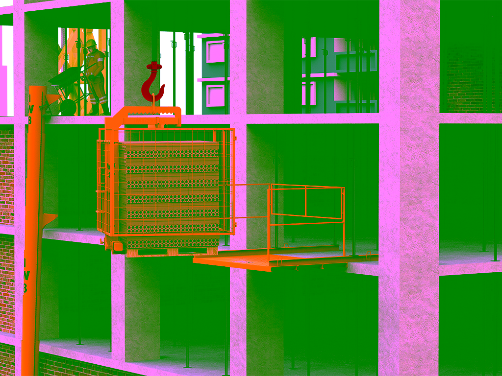 É o equipamento ideal para o içamento de ferramentas, sacos de argamassa, baldes, latas de tinta e outros insumos fracionados para os andares superiores de edifícios. A gaiola garante que nada caia sobre os trabalhadores no solo.