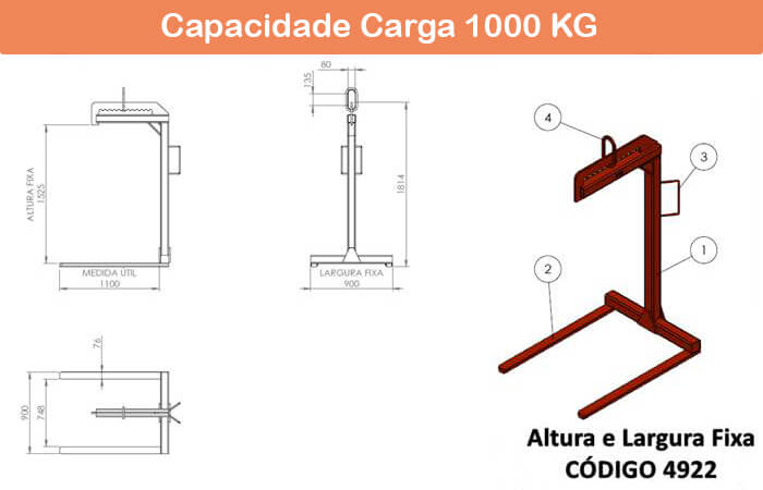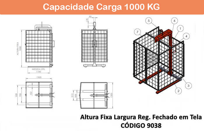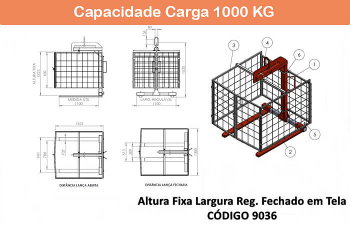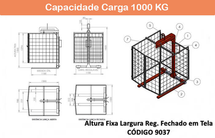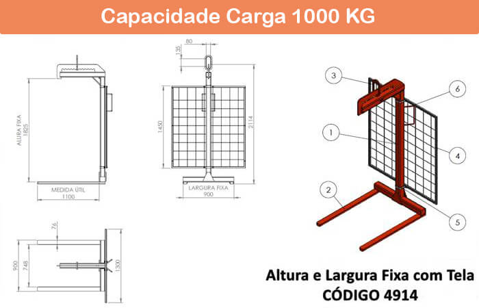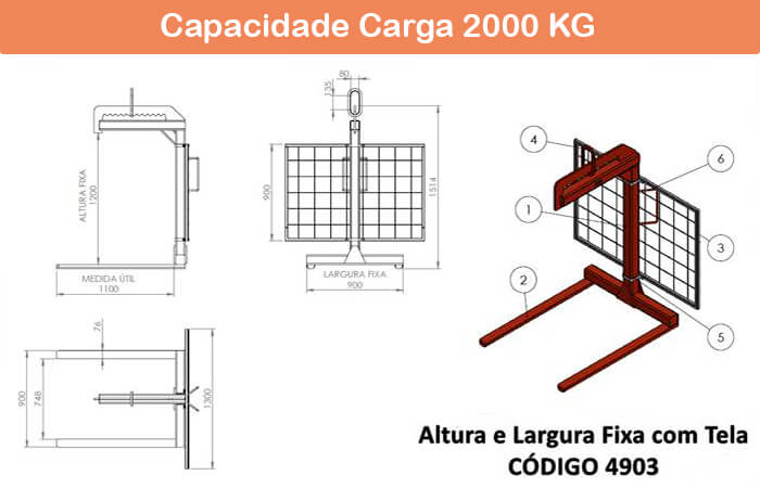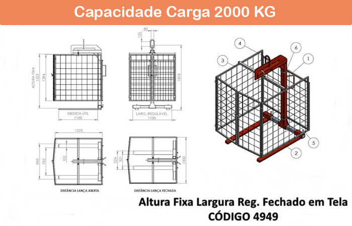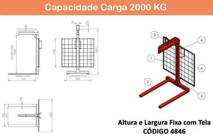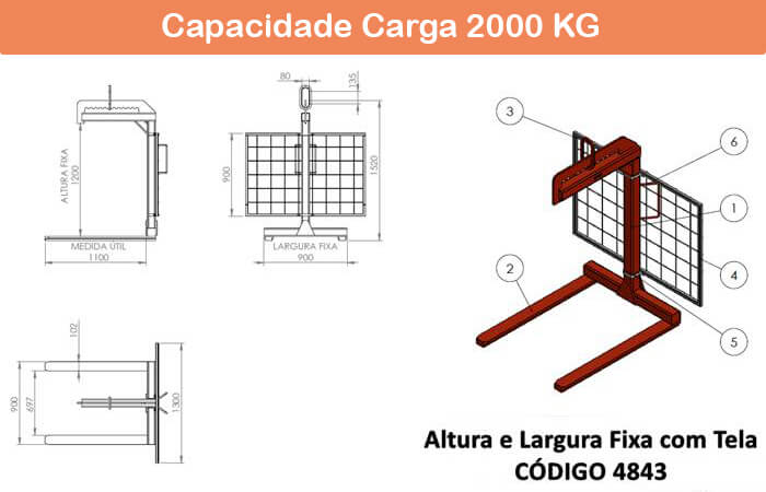 Seguem os desenhos dos modelos de garfo fechado com tela e com tela de proteção. Confira as informações referentes aos modelos na página de Garfo Paleteiro com Tela.