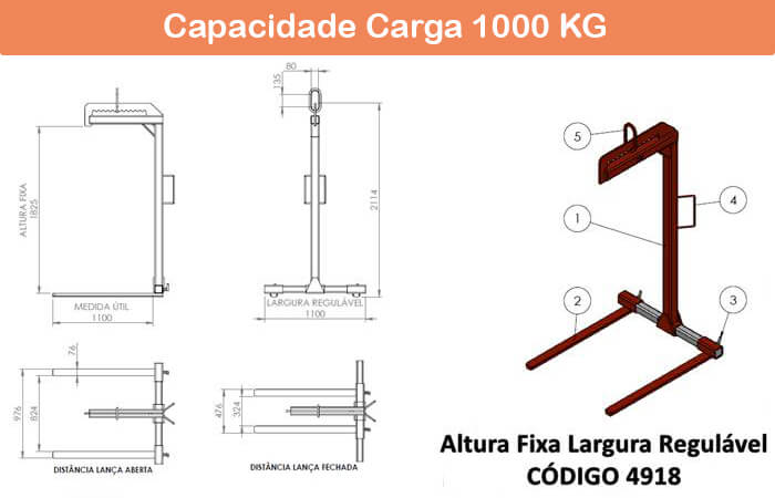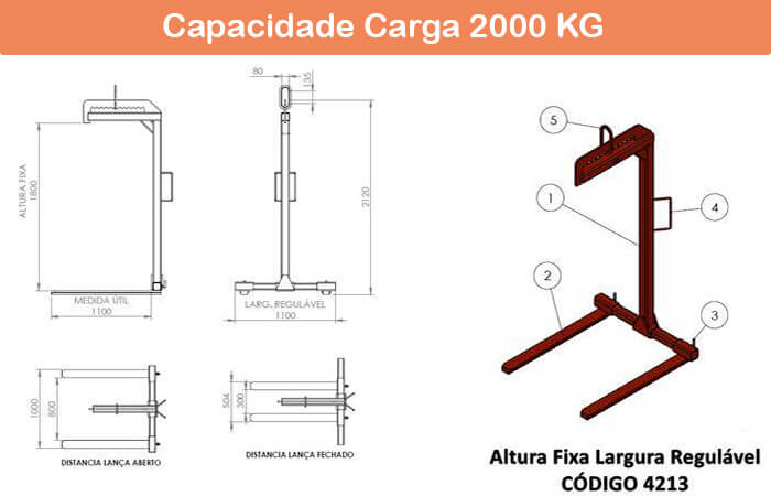 Seguem os desenhos dos modelos de garfo regulável. Confira as informações referentes aos modelos na página de Garfo Paleteiro Regulável.
