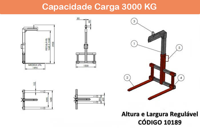 MODELOS DE GARFO PALETEIRO REGULÁVEL